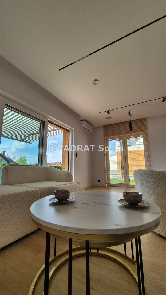 Dom został oddany do użytkowania w 2023r. Jest całkowicie wykończony i umeblowany. Dom składa się z dwóch kondygnacji. Powierzchnia użytkowa to 132,90m2 w tym garaż o pow. 17,57m2.