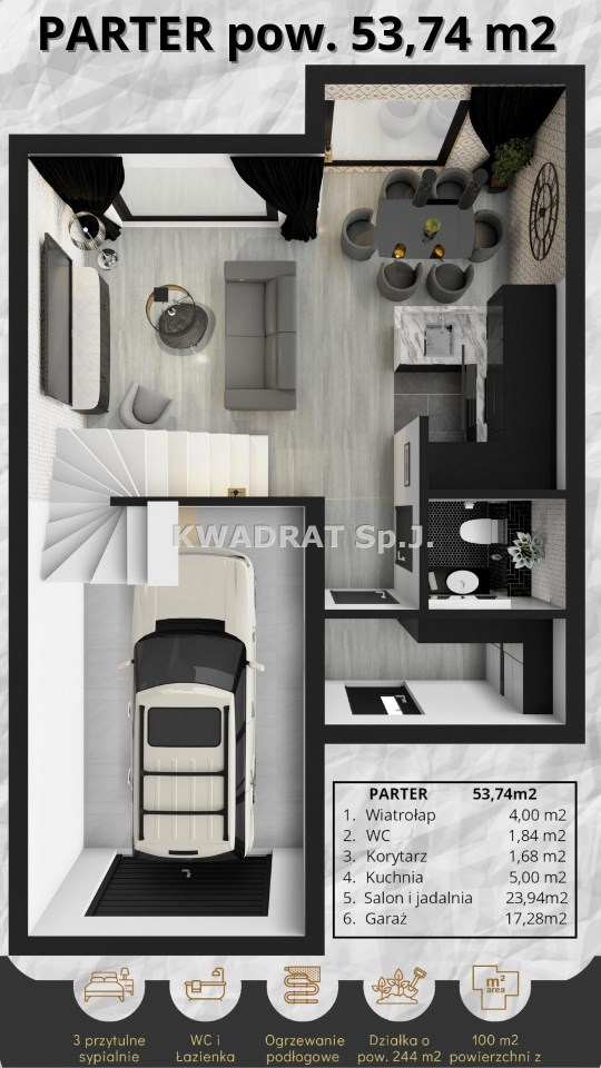 Oferujemy wyjątkowe domy o powierzchni 100,46m², położone w spokojnej i zielonej okolicy, zaledwie kilkanaście minut od centrum Kępna. To idealna propozycja dla osób poszukujących połączenia komfortu, nowoczesnych rozwiązań i bliskości natury, bez rezygnacji z dostępu do miejskiej infrastruktury.