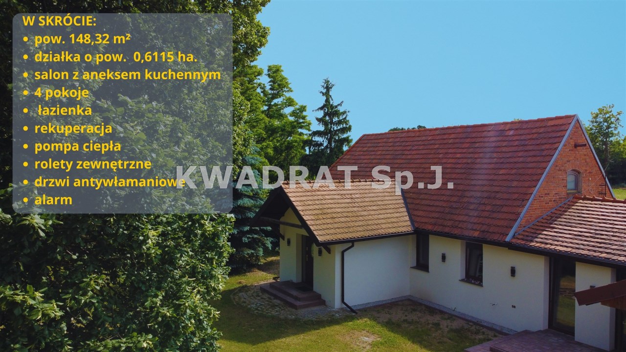 Dom położony jest na uboczu z pięknym widokiem na pola, z dala od sąsiadów – idealne miejsce do życia w ciszy i spokoju. Nieruchomość składa się z 4 pokoi, salonu z otwartą kuchnią, łazienki oraz pomieszczenia gospodarczego. Powierzchnia domu to 148,32 m², działki – ok. 0,6115 ha.