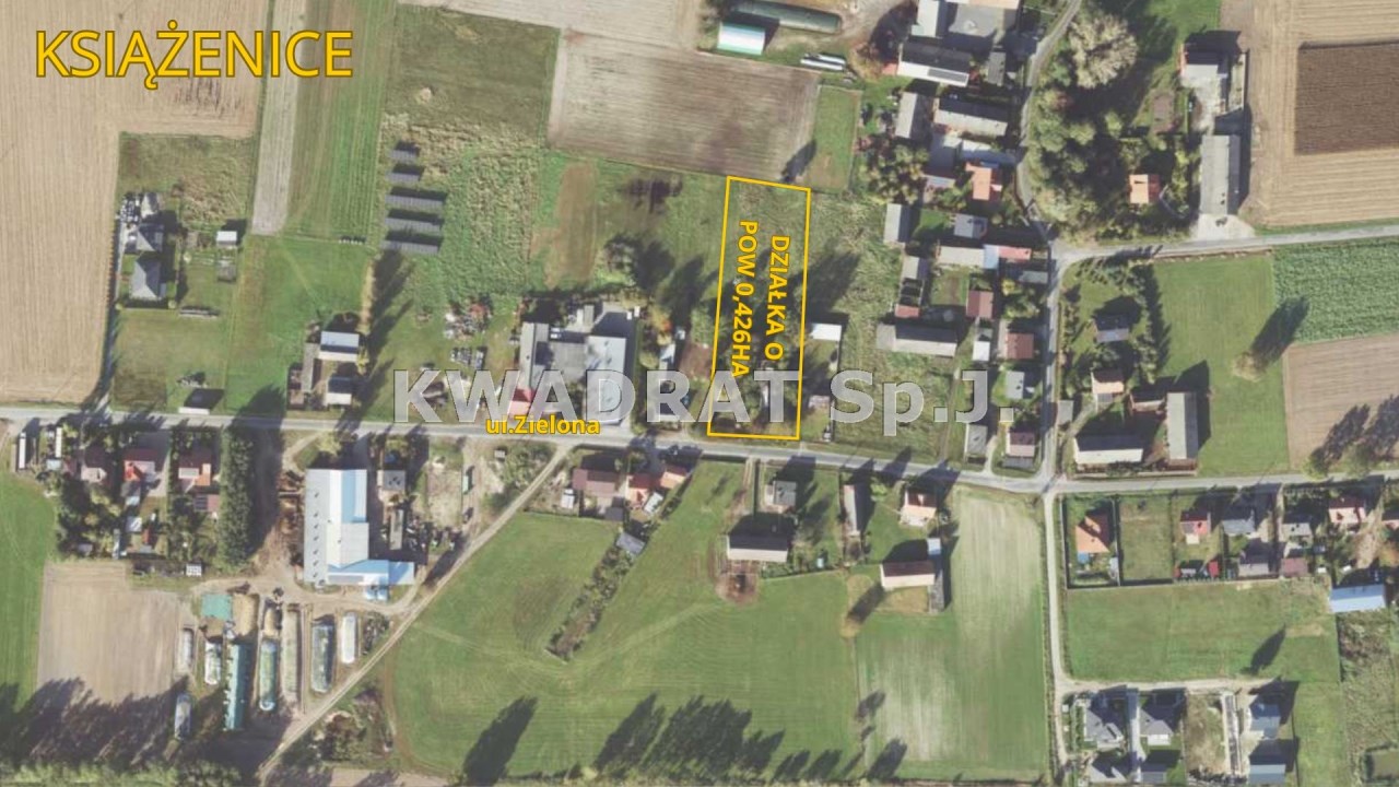Oferujemy do zakupu nieruchomość gruntową o powierzchni 4260 m², zlokalizowaną w spokojnej i urokliwej części Książenic, przy ulicy Zielonej.