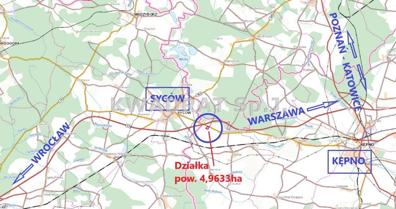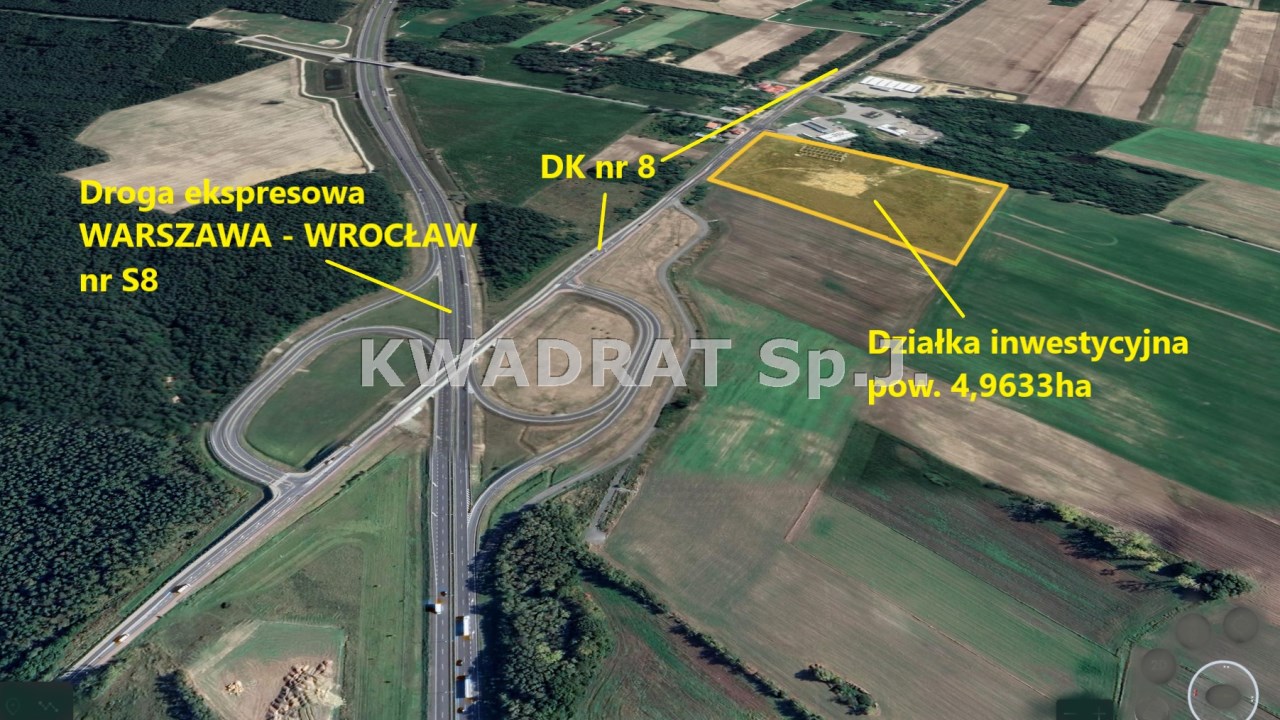 Biuro KWADRAT prezentuje na sprzedaż dwie działki inwestycyjne o łącznej pow. 4,9633ha w miejscowości SŁUPIA POD BRALINEM. Nieruchomość położona jest bezpośrednio przy DK nr 8 oraz przy węźle na drogę ekspresową S8 (Warszawa – Wrocław).