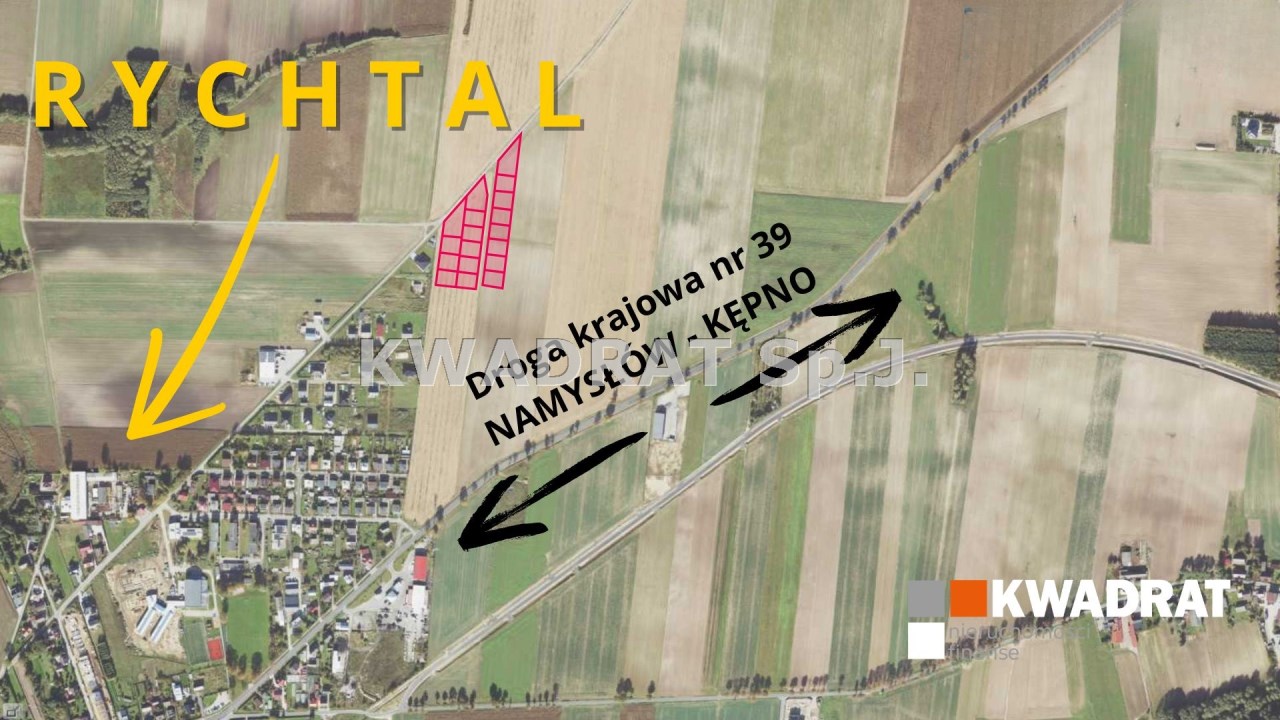 KWADRAT prezentuje ofertę sprzedaży działek w Rychtalu. Miejscowości znajduje się w powiecie kępińskim. Działki zlokalizowane są bezpośrednio przy drodze DK nr 39 (Kępno – Namysłów) na wjeździe do miejscowości od strony Kępna.