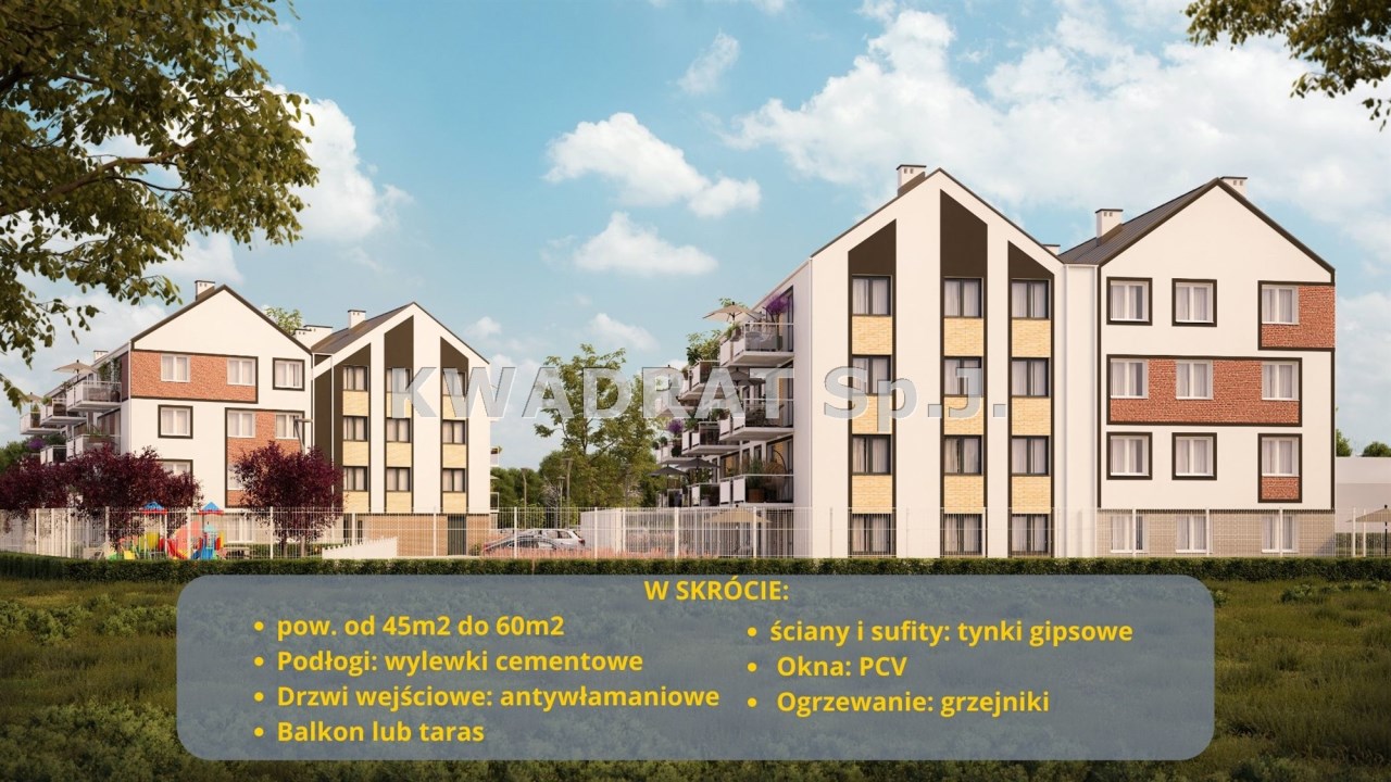Prezentowane mieszkanie znajduje się na drugim piętrze czterokondygnacyjnego budynku. Powierzchnia użytkowa 46,15 m². Składa się z salonu z aneksem kuchennym, pokoju, łazienki i garderoby. Z salonu mamy wyjście na balkon o powierzchni 5,20 m² . Stan deweloperski do własnej aranżacji.