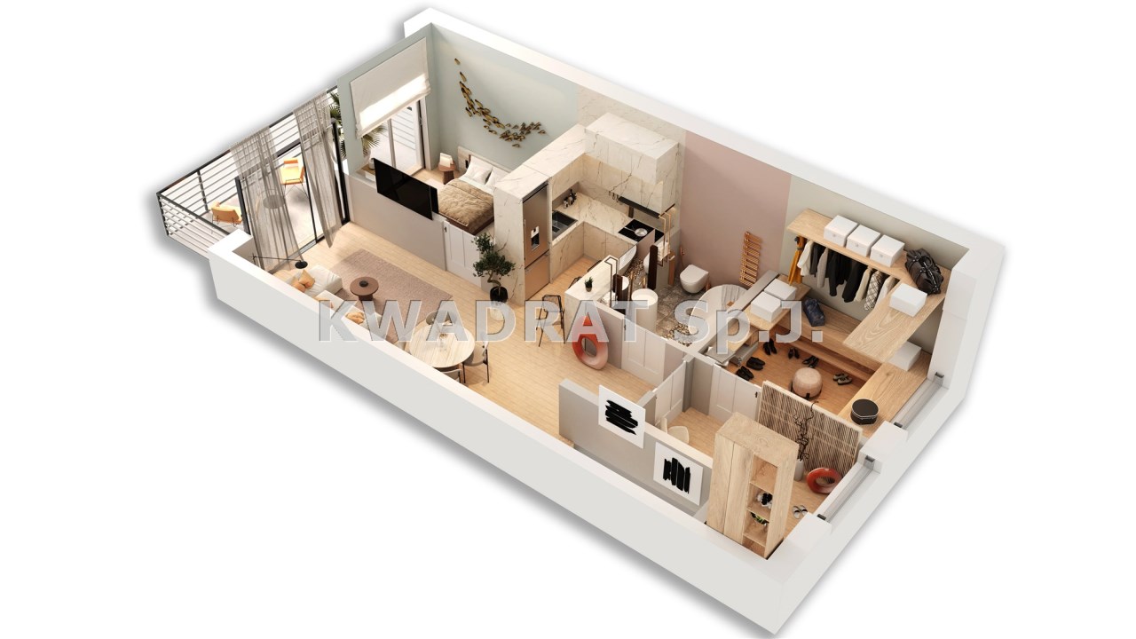 KWADRAT Sp.J. prezentuje na sprzedaż nowoczesne i wygodne mieszkanie w bardzo dogodnej lokalizacji. Lokal położony jest na I piętrze domu w zabudowie szeregowej. Powierzchnia całkowita 61,48 m2. Oferowane mieszkanie posiada duży, ustawny salon wraz aneksem kuchennym i bezpośrednim wyjściem na TARAS, 2 sypialnie oraz łazienkę. Do mieszkania przynależne są dwa miejsca parkingowe.