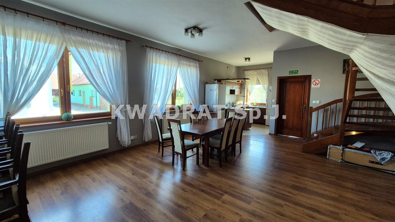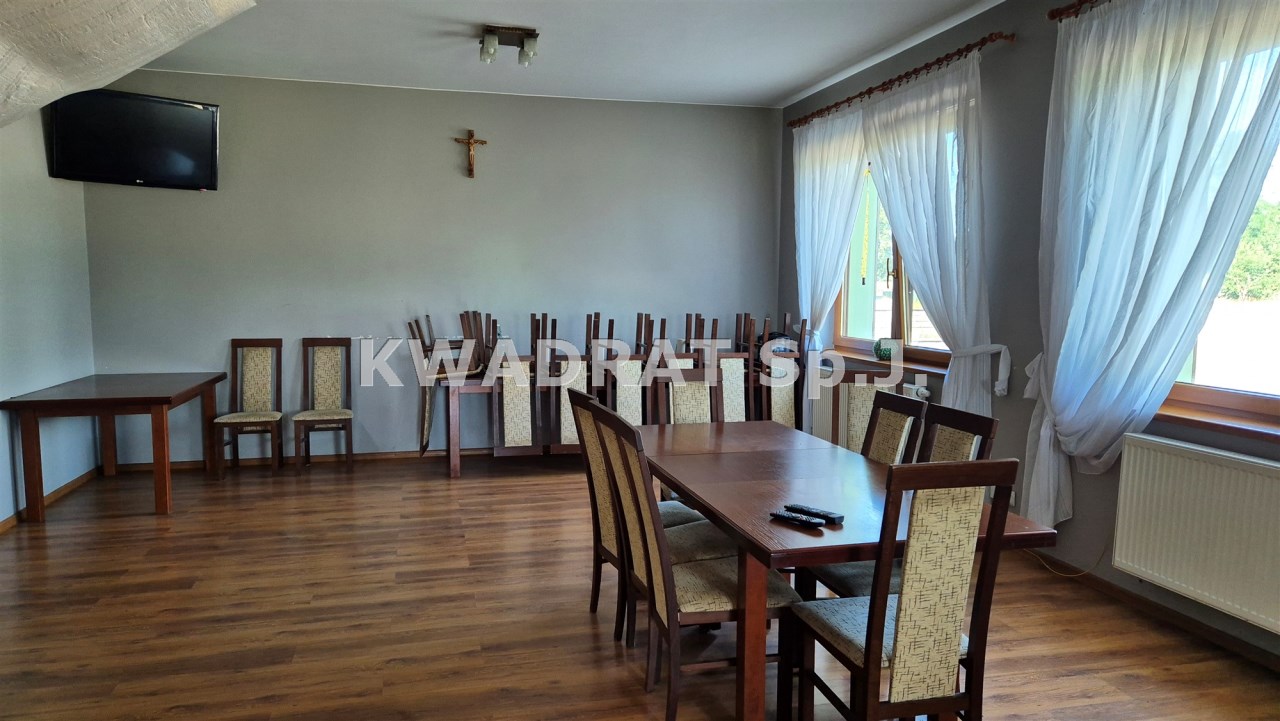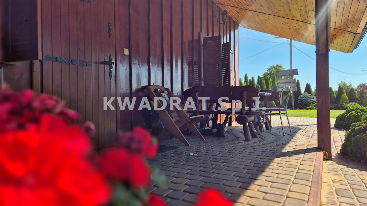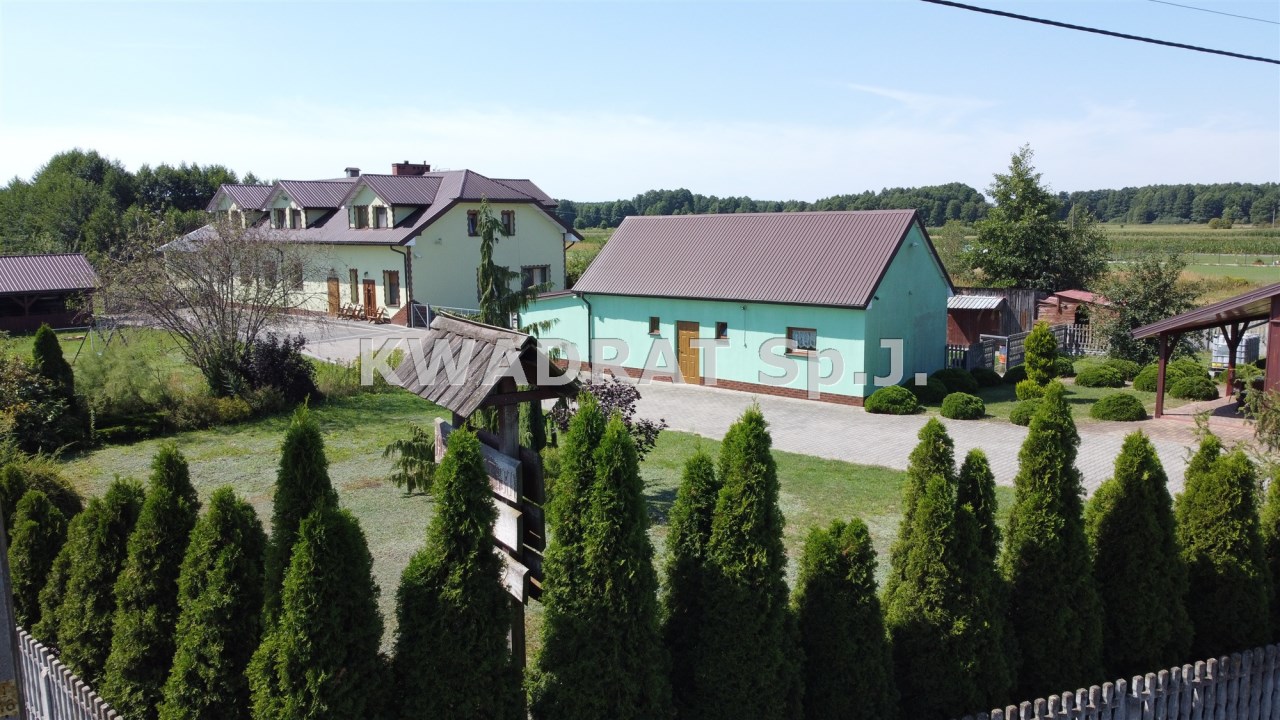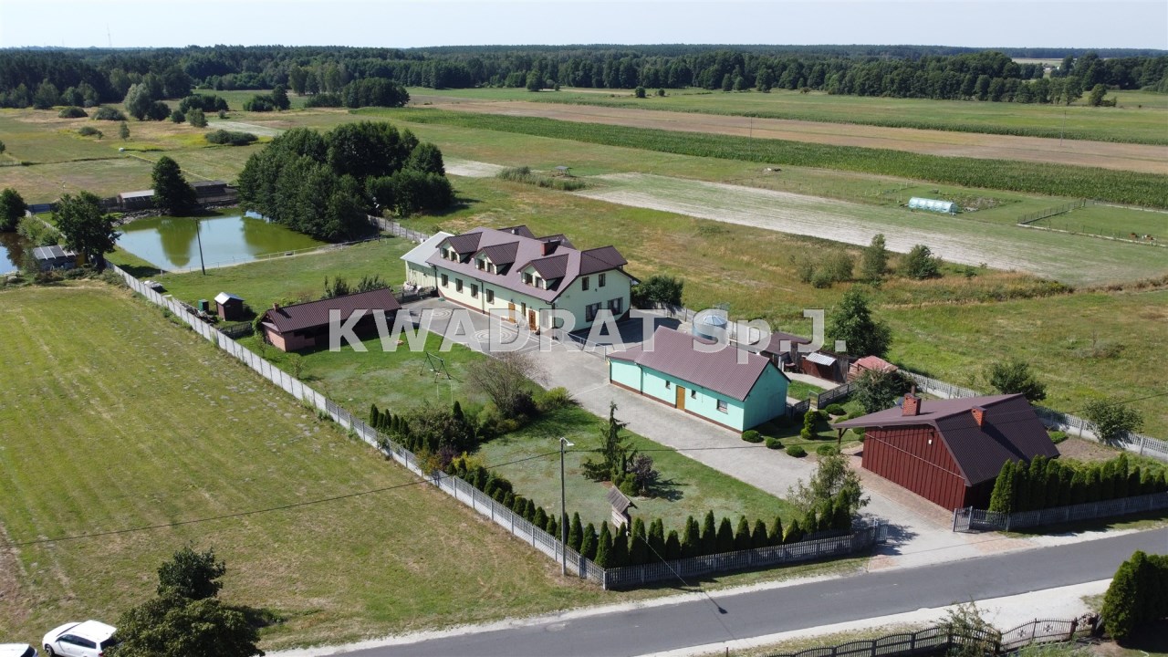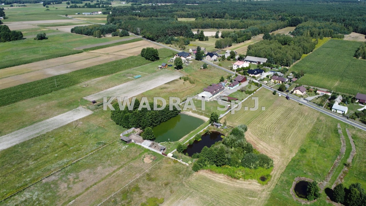 Biuro KWADRAT prezentuje na sprzedaż nieruchomość o powierzchni: 3,52ha zabudowaną klimatycznym drewnianym budynkiem jednorodzinnym, budynkiem socjalnym, budynkiem z pięcioma pokojami pod wynajem i stajnią.