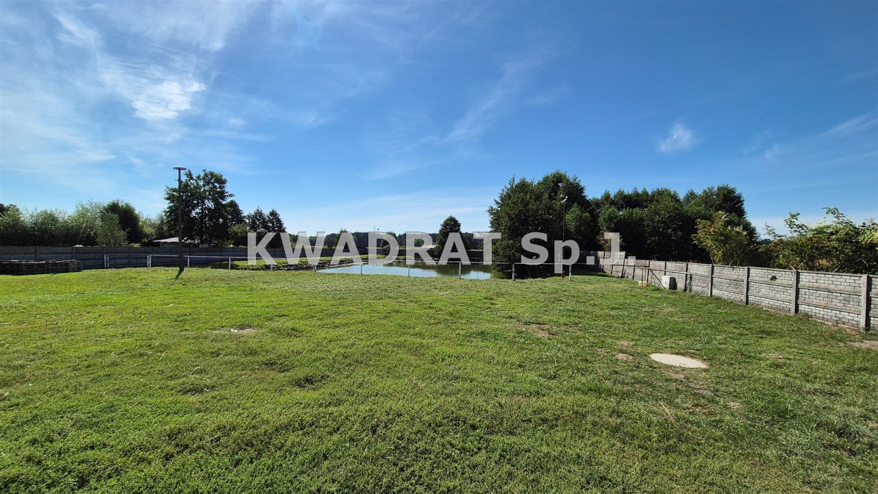 Całość dopełnia duży staw. Posesja otoczona jest polami a na końcu działki lasem.