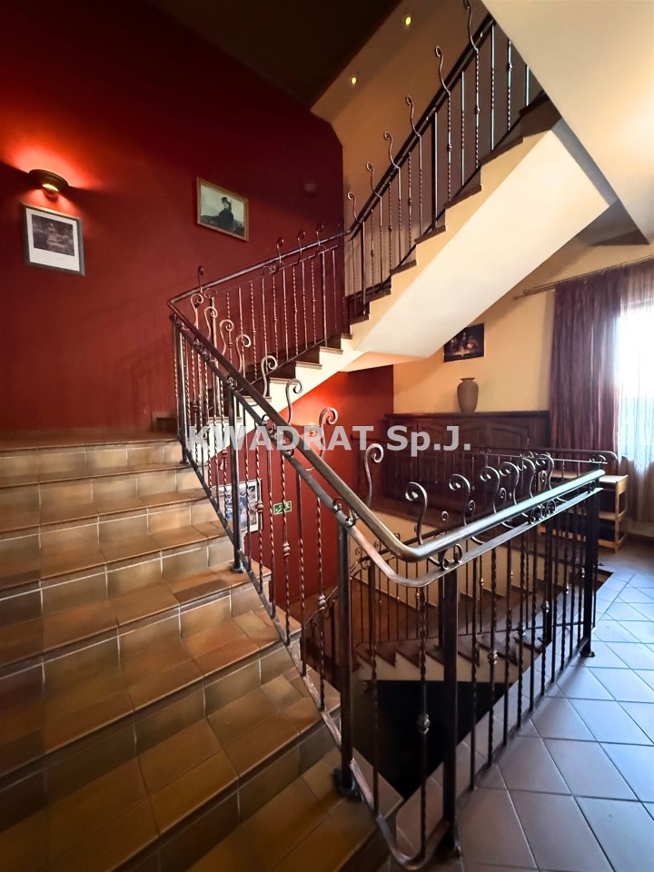 Na I piętrze zlokalizowana jest restauracja o powierzchni ok. 70 m² oraz sala bankietowa o powierzchni ok. 110 m² z pełnym zapleczem kuchennym. Ta część obiektu idealnie sprawdza się przy organizacji przyjęć okolicznościowych, wesel lub wydarzeń firmowych. Z restauracji prowadzi wyjście na taras o powierzchni ok. 60 m² z widokiem na park, co stanowi dodatkowy atut dla gości.